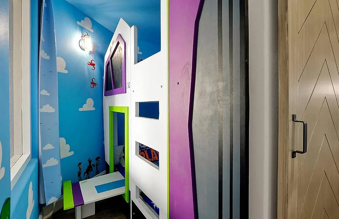 The 107 m² Wands & Wishes | Luxury Condo Minutes From Disney Orlando provides easy access to various city attractions, such as Lake Bryan, situated nearly a 5-minute walk away. This spacious apartment is equipped with a hot tub, creating a more enjoyable ambiance for guests.